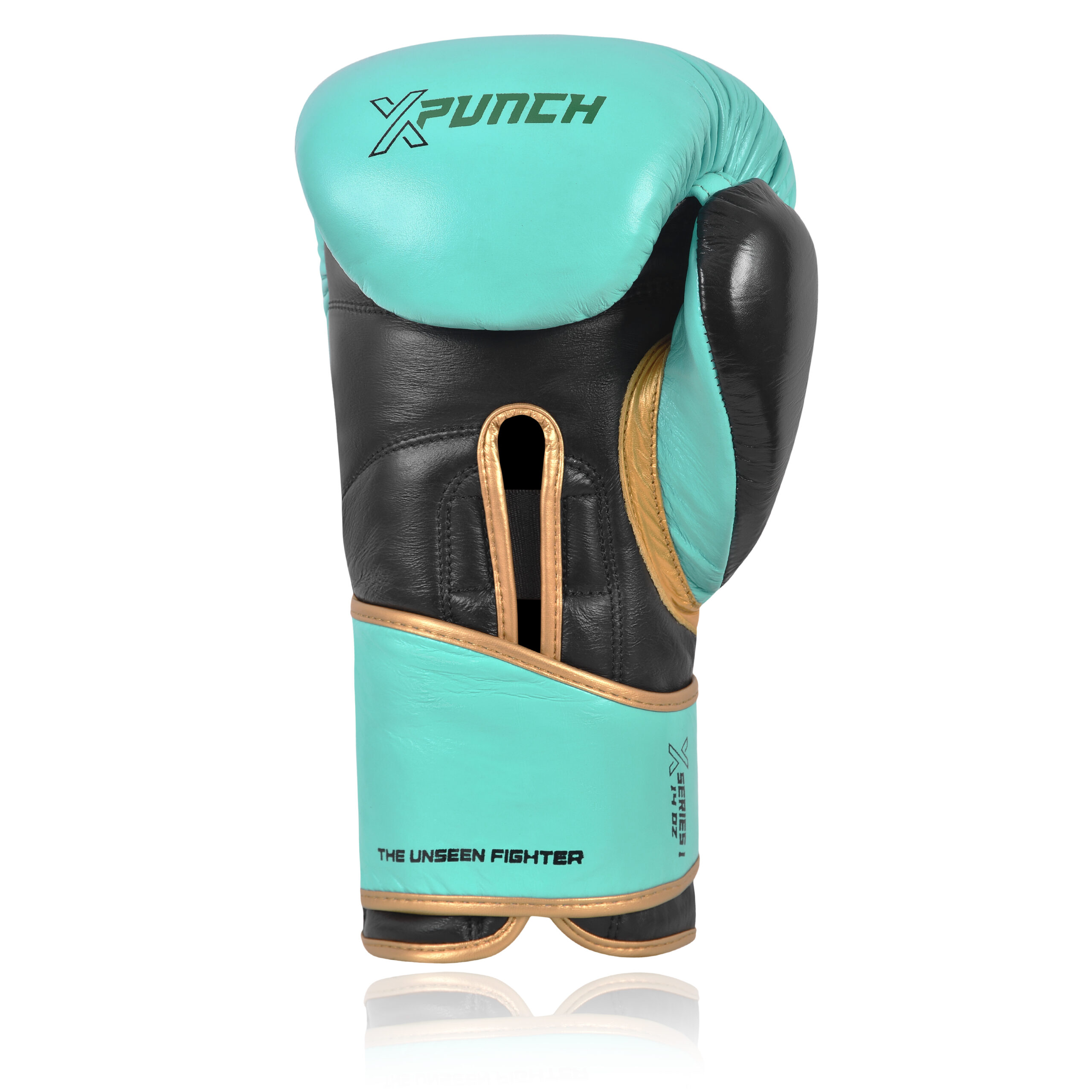Model wyróżnia się nowoczesnym designem w kolorystyce turkusowo-czarnej ze złotymi detalami oraz szerokim, stabilizującym paskiem na rzep z hasłem „The Unseen Fighter”, podkreślającym charakter serii.